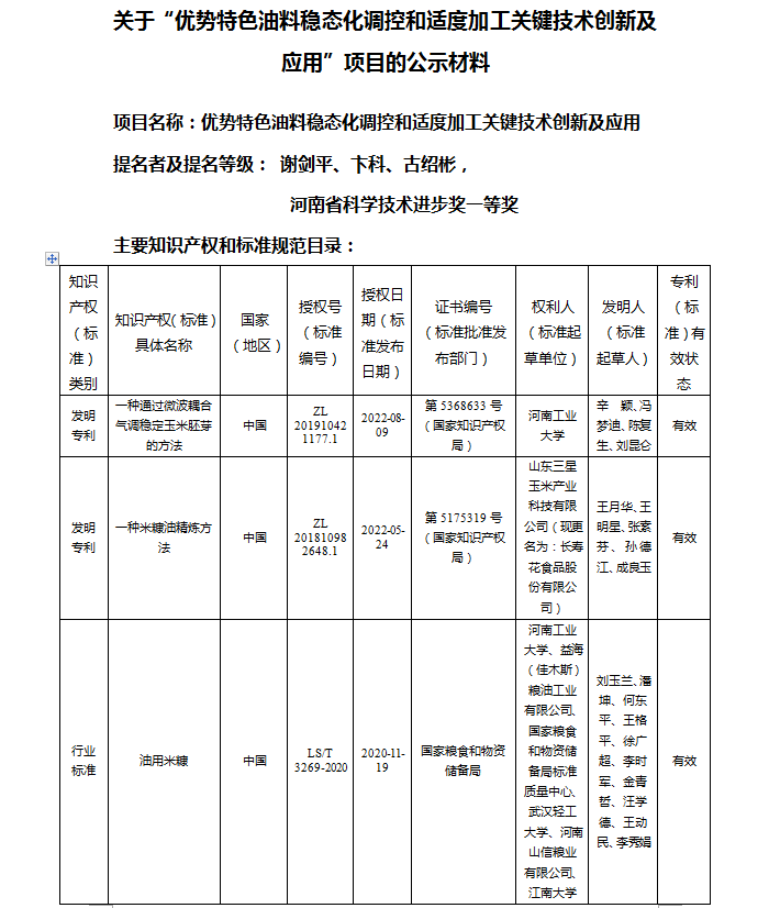 關于“優(yōu)勢特色油料穩(wěn)態(tài)化調(diào)控和適度加工關鍵技術創(chuàng)新及應用”項目的公示材料